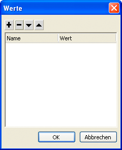 Wenn Sie auf die Zelle „Wert“, die anfangs ein leeres Array zeigt, doppelklicken, wird das Dialogfeld „Werte“ geöffnet, in dem Sie mehrere Beschriftungs- und Datenwerte eingeben können, um den Datenprovider zu erstellen.
