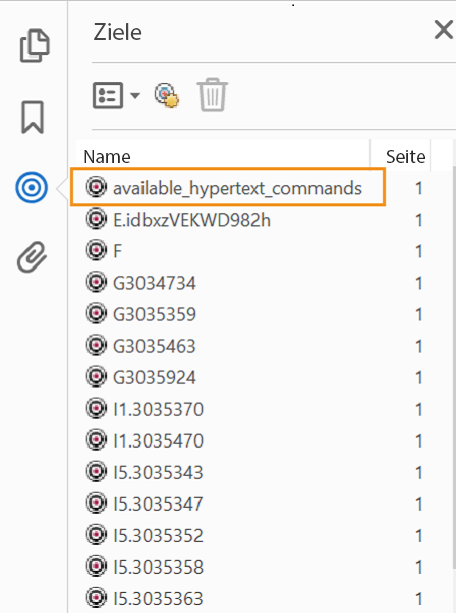 Note: Bei dem benannten Zielnamen muss die Groß- und Kleinschreibung beachtet werden und der Name darf keine Leerzeichen enthalten. Sie müssen außerdem die Eindeutigkeit der benannten Ziele innerhalb eines Buches sicherstellen.