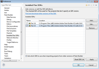 3. Klicken Sie im Dialogfeld Voreinstellungen auf Flash Builder > Installierte Flex SDKs.