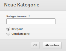 Kategoriename: Der Name der Kategorie. Der Name muss eindeutig sein. Kategorien und Unterkategorien können aber den gleichen Namen haben.