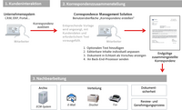 Das folgende Diagramm bietet eine Übersicht über den Ablauf der Korrespondenzverwaltung. Der Arbeitsablauf besteht aus drei Phasen: