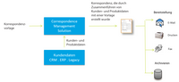 Systemgesteuert: Die Erstellung von Schriftstücken wird durch so genannte Ereignistrigger ausgelöst und erfolgt automatisch. Beispiel: Ein Mahnschreiben zur Erinnerung an eine Steuervorauszahlung wird durch Zusammenfügung der vorab definierten Vorlage mit den Kontaktdaten des Empfängers generiert. Der endgültige Brief kann per E-Mail gesendet, ausgedruckt, als Fax verschickt oder archiviert werden.