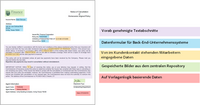 Daten, die aus Back-End-Unternehmenssystemen bezogen werden. Diese Daten werden dynamisch mit der Korrespondenzvorlage kombiniert.