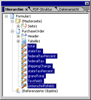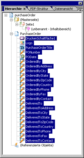 In der Palette „Hierarchie“ sollte jetzt Folgendes angezeigt werden, wenn Sie alle Elemente unter „Bestellung“ ausblenden: