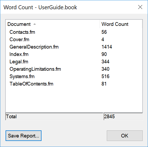In addition to finding word or character count on an individual file, you can also get the total number of words in every single file in your book.