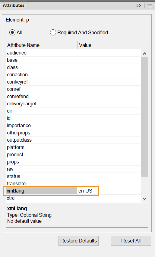 AttributeForXMLLang=xml:lang