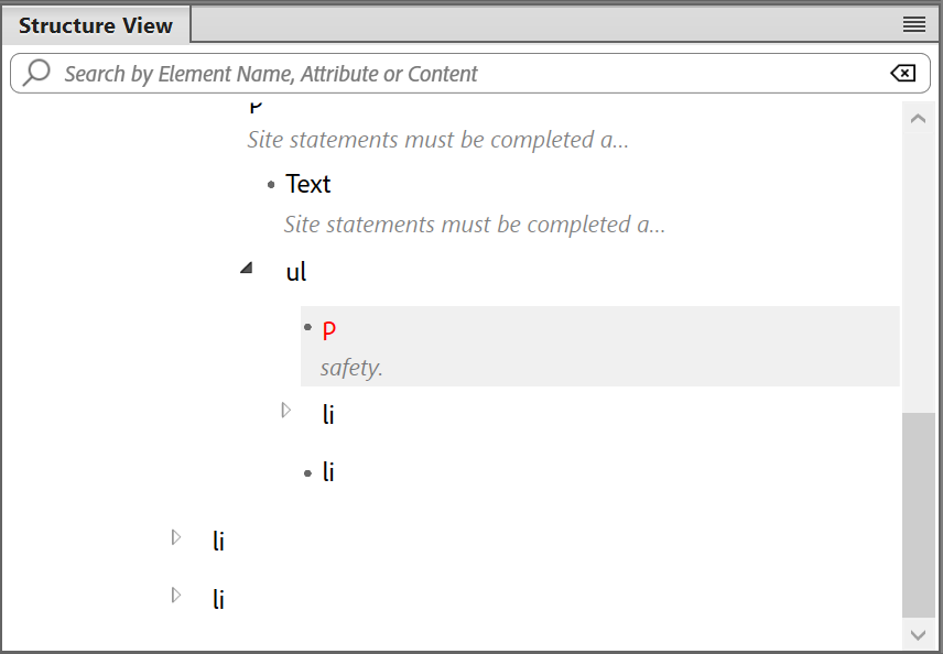 Navigation: Clicking on an element in the Structure View selects the element and its content in the XML View. This way, you can quickly navigate to the required content in your document.