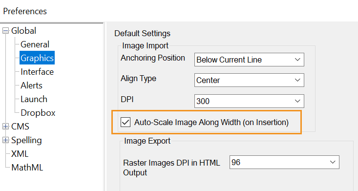 You can use this option to scale your images when you insert them both in structured (DITA 1.2 or 1.3) and unstructured documents at the following positions: