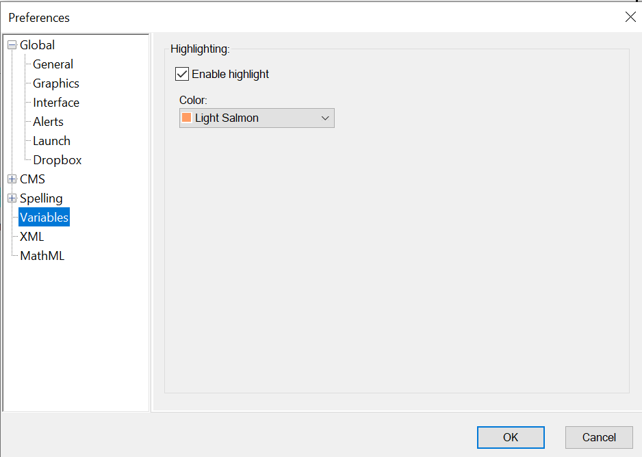 While authoring, you can highlight the variables for files opened in the current session. This can help you segregate the variables from the text and clearly see them. You can highlight the variables both in structured and unstructured documents.