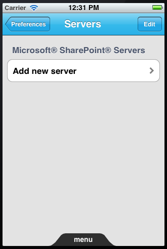 Add a Microsoft SharePoint server to your list of available servers Tap menu at the bottom of the screen and