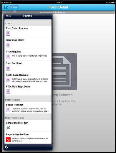 Forms list on iPad