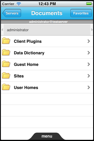 Favorites list Note: The image above shows the Documents screen on iPhone. It looks