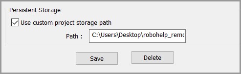 Allows to customize the storage path as per requirements for projects of RoboHelp Server contexts. These projects are stored within the RoboHelp installation category by default. Select Use custom project storage path and enter the path within the text box in Configuration Manager.