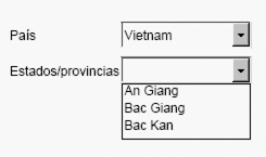 Por ejemplo, después de que seleccione Vietnam en la lista desplegable, los elementos mostrados en la lista Estados/Provincias solo muestran los aplicables a Vietnam.