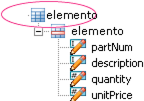 En la paleta Vista de datos, busque un nodo que podría ser una tabla. Por ejemplo, busque el siguiente nodo de elemento.