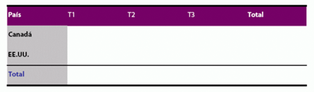 Puede crear su propio estilo de tabla para proporcionar un aspecto coherente a los bordes, sombreado, alineación y fuentes de las tablas. Por ejemplo, puede aplicar formato a una tabla que tenga un aspecto como éste y guardarla en la biblioteca personalizada para que pueda volver a utilizarla en otro formulario.