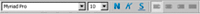 Muestra el nombre de la fuente del texto seleccionado.- Tamaño de fuente