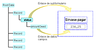 El siguiente diagrama muestra el uso del enlace de subformulario para agrupar objetos y por tanto, simplifica el procedimiento para procesar el formulario. El subformulario está enlazado al grupo de repetición de los datos, eliminando el enlace ambiguo. Se evalúa el enlace para el primer grupo y no es necesario volver a evaluarlo para las siguientes repeticiones.