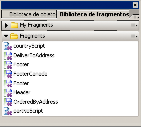 Seleccione Ventana > Biblioteca de fragmentos para mostrar la paleta Biblioteca de fragmentos.