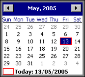 Puede utilizar el objeto Campo de fecha para facilitar a los usuarios la selección de una fecha. Este calendario es lo que los usuarios ven en el formulario cuando hacen clic en la lista desplegable de Fecha de O.C. al ver el formulario en Adobe® Acrobat®.