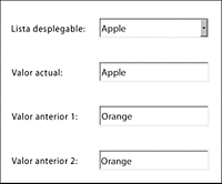 En este ejemplo se muestra cómo obtener el valor actual de una lista desplegable. También muestra distintos modos de acceder al valor anterior de una lista desplegable en un formulario. Además de las secuencias de comandos que definen los valores actuales y anteriores, es importante señalar que las secuencias de comandos se encuentran en el suceso change de la lista desplegable.