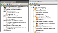 Structure hiérarchique d’un livre FrameMakerVous pouvez appliquer une structure et un regroupement hiérarchiques dans le livre. Vous pouvez également inclure des livres enfants dans un livre et créer des dossiers et des groupes dans un livre. Lorsque vous liez ou importez un livre FrameMaker, le conteneur Gestionnaire de projets dans RoboHelp indique la hiérarchie du livre. Une fois liés ou importés dans RoboHelp, les livres enfants héritent de la table des matières, de l’index et du glossaire du livre parent.
