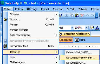 Liaison ou importation de documents FrameMaker dans un projet RoboHelp Vous pouvez importer des fichiers FM, MIF, DITA et XML.
