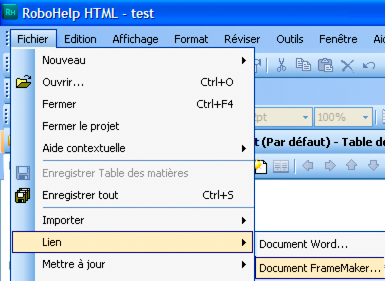 Création d’un projet RoboHelp par liaison ou importation de livres ou documents FrameMaker