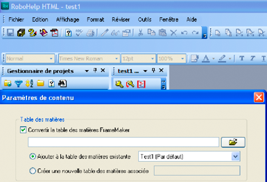 Création d’un projet RoboHelp par l’importation d’un livre FrameMaker ou d’un fichier DITAMAP