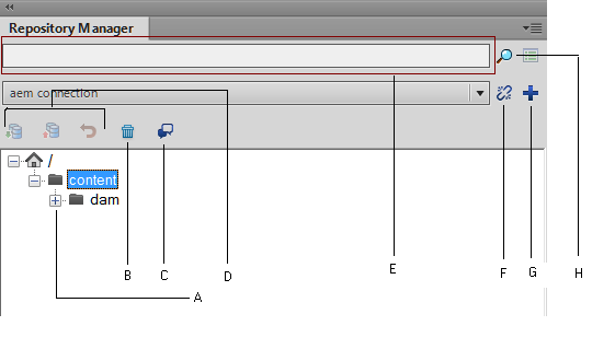 La fenêtre Gestionnaire de référentiel répertorie les fichiers et dossiers du référentiel Adobe Experience Manager. Elle vous permet d’effectuer différentes tâches sur les fichiers et dossiers disponibles.
