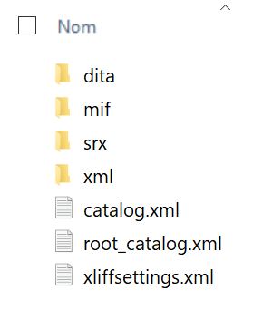 - Le dossier xml contient les règles ITS pour la conversion de XML en XLIFF 1.2. Vous devez définir vos règles dans le fichier itsrules.xml .