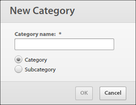 L’éditeur de catégories comprend un sous-ensemble des outils de la barre d’outils de gestion des actifs, à savoir : Nouveau