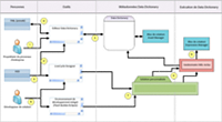 Le schéma ci-dessous décrit en détail les définitions de dictionnaire de données de bout en bout. Il comprend le processus d’intégration avec notamment les personnes impliquées, les outils utilisés, les métadonnées de stockage ainsi que l’accès lors de l’exécution :