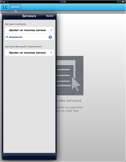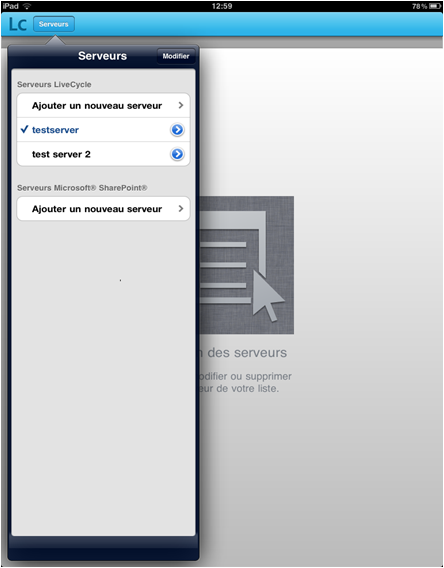 Ajout d’un serveur LiveCycle à la liste des serveurs disponibles Ouvrez le menu.