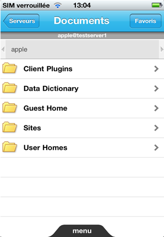 Liste Favoris Remarque : l’image ci-dessus montre l’écran Documents sur iPhone. Son apparence est légèrement différente sur iPad, mais vous parcourez les dossiers de la même façon.