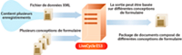 Le service Output peut générer des assemblages de documents, dans lesquels plusieurs enregistrements sont fournis dans l’ensemble de données et chaque enregistrement correspond à une conception de formulaire. Le service Output génère un document unique, constitué de plusieurs conceptions de formulaire.