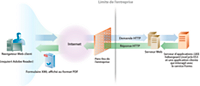 Rendu de formulaires au niveau du clientUtilisez la fonctionnalité de rendu côté client du logiciel Acrobat ou Adobe Reader pour optimiser la livraison de contenu PDF et améliorer la capacité du service Forms à gérer la charge réseau. Ce processus est désigné sous le nom de rendu d’un formulaire au client. Pour effectuer le rendu d’un formulaire au client, le périphérique client (un navigateur Web, en général) doit utiliser Acrobat 7.0 ou Adobe Reader 7.0 ou versions ultérieures.