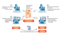 Le propriétaire du document, le coordinateur de jeux de stratégies ou l’administrateur peuvent suivre les documents et modifier l’accès à ces derniers à l’aide des pages Web. Les développeurs peuvent également assurer le suivi des documents en utilisant la fonction Process Design dans ou l’API Rights Management