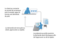 Envoi et approbation à l’aide d’un guide (obsolète)Dans cet exemple, le client d’une banque sollicite un prêt via un portail bancaire. Le client complète, signe et soumet un formulaire HTML5 à partir de son iPad, puis Workspace HTML est utilisé pour examiner la demande de prêt. Une fois la demande approuvée ou rejetée, elle est renvoyée au client.