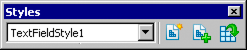 Visualizza il nome dello stile applicato all'oggetto attualmente selezionato. Elenca tutti gli stili disponibili per il tipo di oggetto selezionato. Utilizzare questo elenco per applicare, modificare o rimuovere stili. Se lo stile contiene sostituzioni, viene aggiunto un asterisco (*) al nome.- Crea nuovo foglio di stile