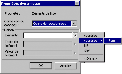 È possibile digitare questa stringa nella casella Elementi anziché selezionarla. Nota: Per le connessioni dati OLEDB, la casella Elementi non è disponibile. Utilizzare le caselle Testo elemento e Valore elemento per selezionare le colonne del database da utilizzare per comporre l'elenco.