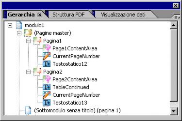 Nella paletta Gerarchia, rinominare l’(Area contenuto senza nome) a pagina 2 in Page2ContentArea.
