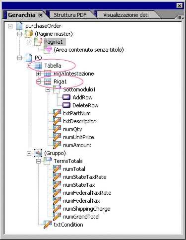 È ora necessario aggiungere i pulsanti che consentono di aggiungere ed eliminare le righe.
