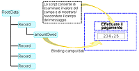 Nel diagramma seguente viene illustrato un esempio di binding di campo: due oggetti campo nel modulo sono associati a elementi di dati. Il binding è ambiguo perché esistono varie istanze di oggetti campo e dei relativi dati. In questo caso, per fare corrispondere l’occorrenza n di ciascun oggetto con l’occorrenza n dei dati corrispondenti durante il rendering del modulo, sarà necessario un processo di elaborazione più complesso.