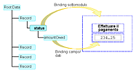Per i moduli associati a delle origini dati, è possibile eseguire un binding di un elemento dati con un oggetto modulo, ad esempio un campo o un sottomodulo. Questo tipo di associazione viene chiamato binding dei dati. È possibile scegliere oggetti che diminuiscono o aumentano in base al numero di dati visualizzati.