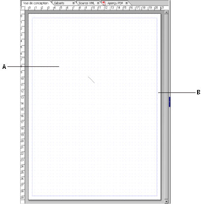 - Gli oggetti possono essere posizionati nelle pagine all'interno dell'area associata a un'area contenuto. Il bordo rappresenta il bordo dell'area contenuto.