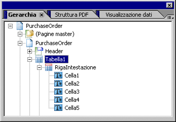 Nella palette Gerarchia, selezionare RigaIntestazione.