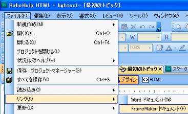 拡張テキストやドロップダウンテキストのような必要な DHTML エフェクトは、FrameMaker の中の RoboHelp メニューを使って作成します。
