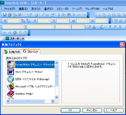 FrameMaker ブックや文書を取り込んで RoboHelp プロジェクトを作成することができます。