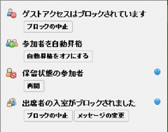 要求または通知ボタンをクリックして、詳細を表示し、必要に応じて対処します。発言要求およびアクセス要求は個別に示されます。その他の通知は情報ボタンの下に表示されます。